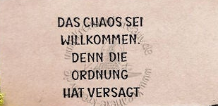 Text: Das Chaos sei Willkommen, denn die Ordnung hat versagt